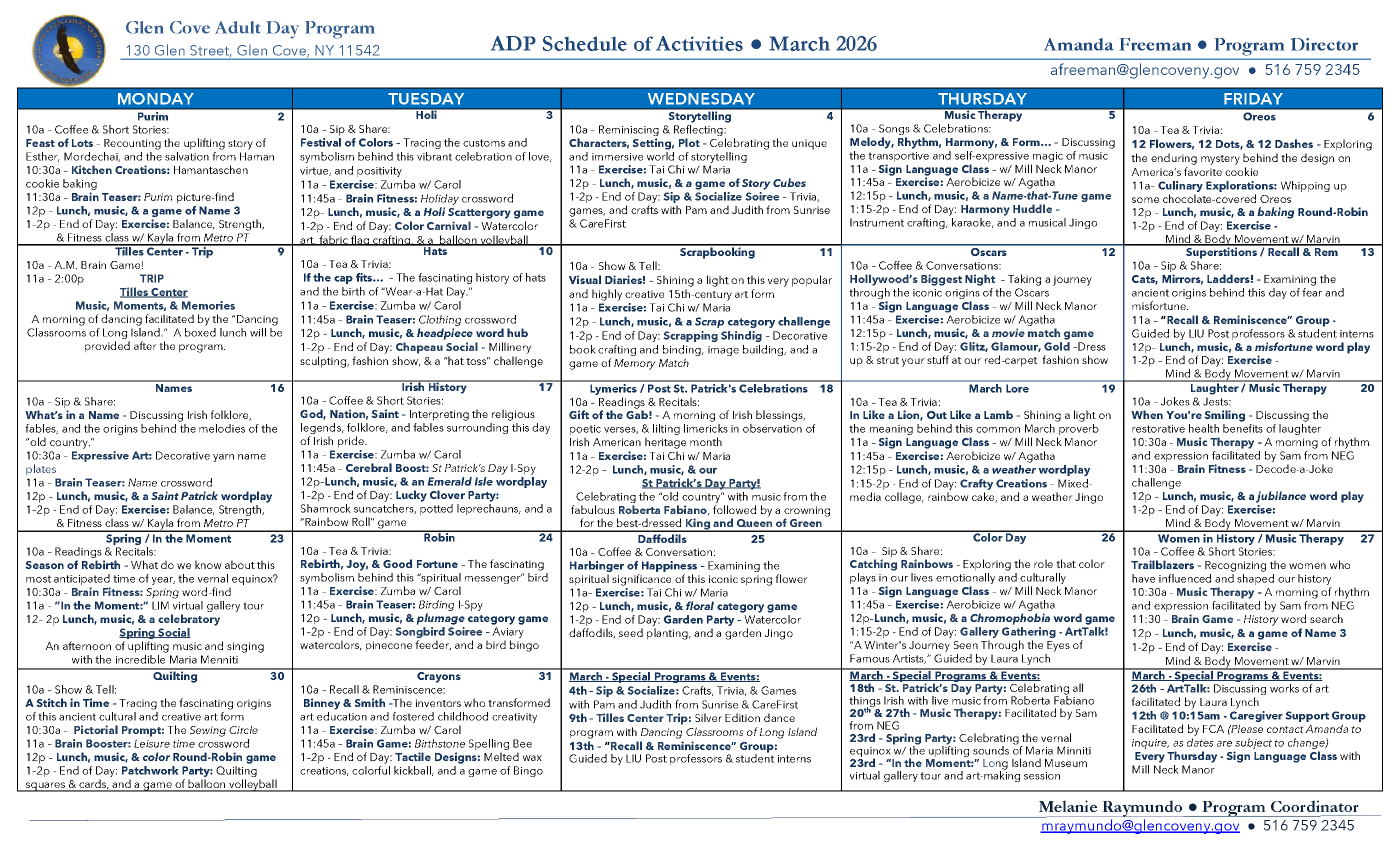 ADP Monthly Calendar Adult Day Program ADP Services ADP Testimonials ADP Mission Click here for Printable Version of the Calendar