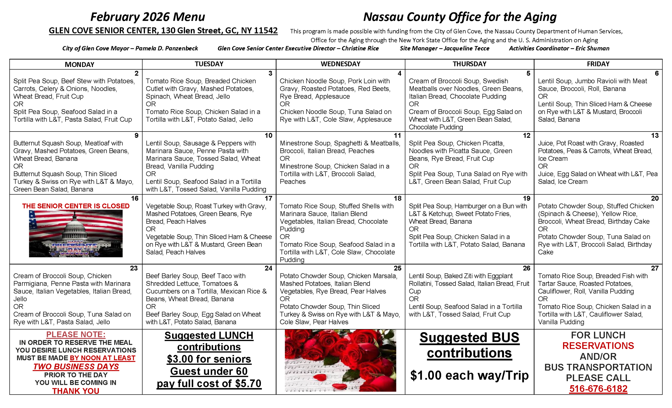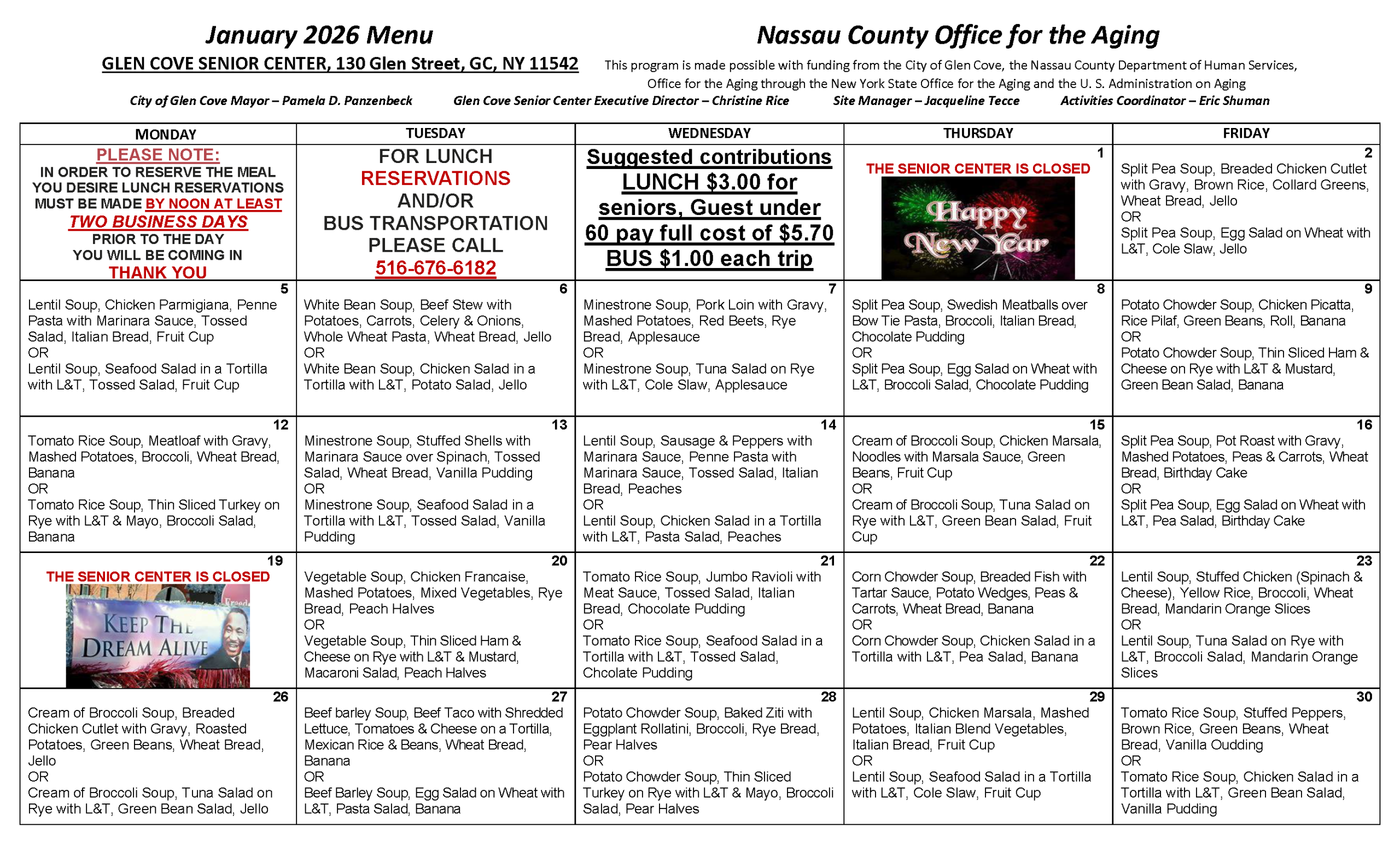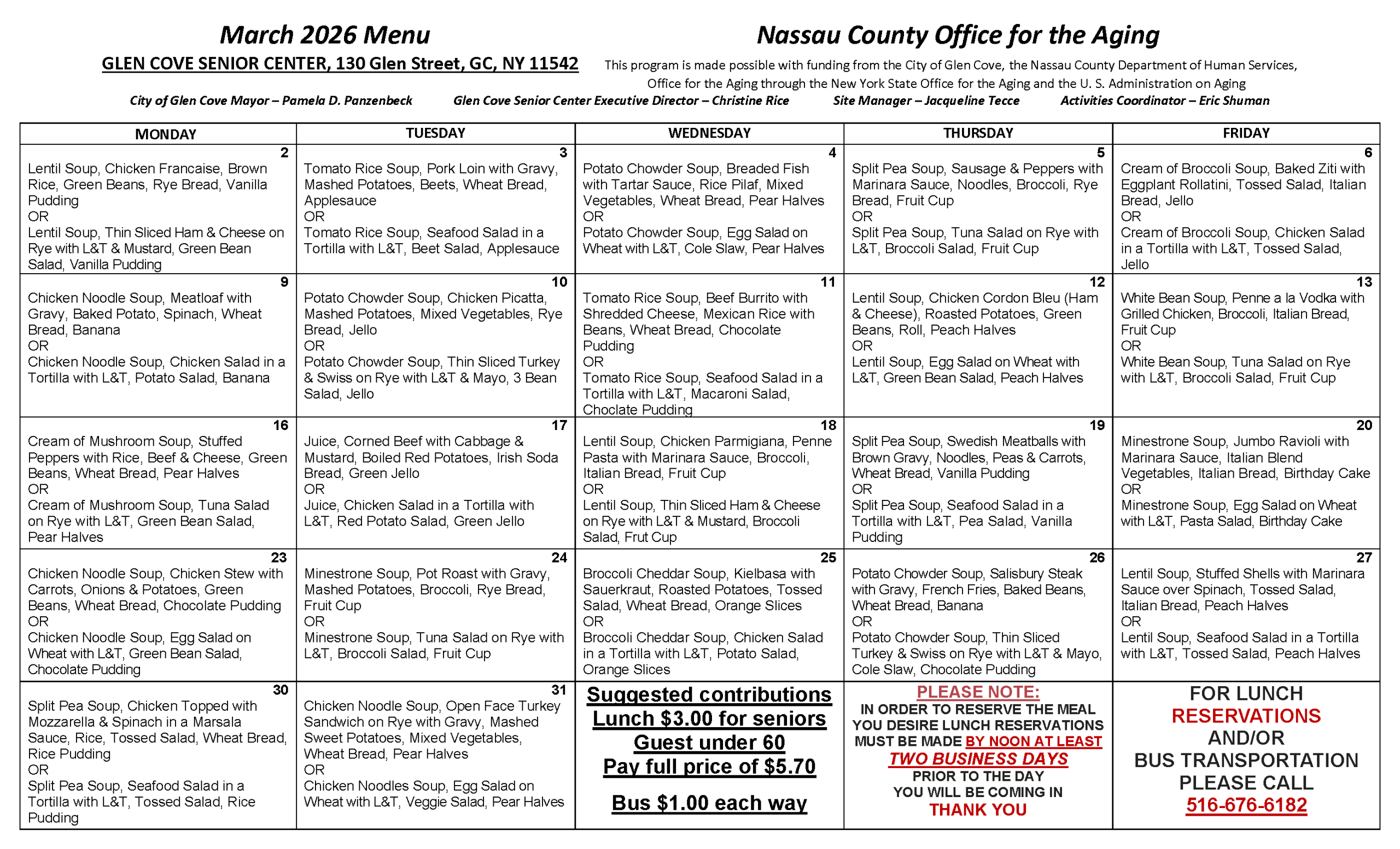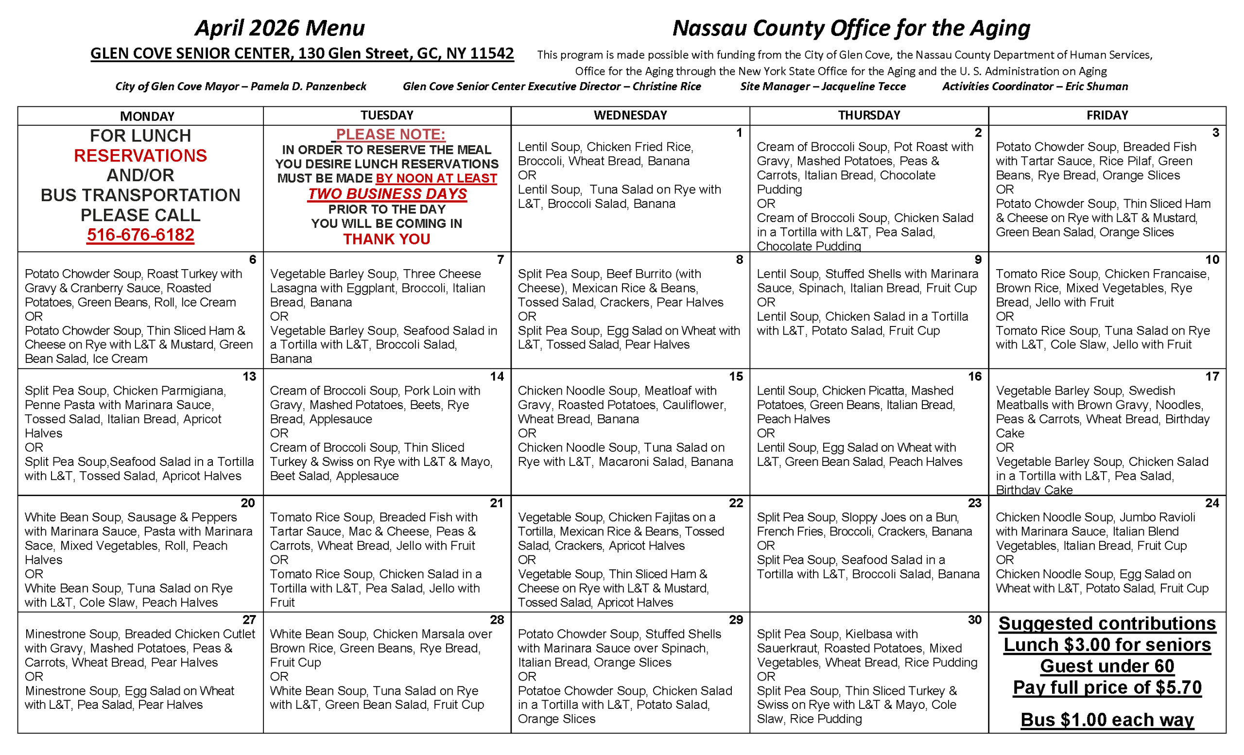 Lunch Menu Calendar